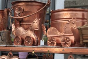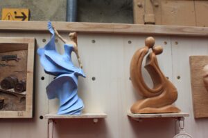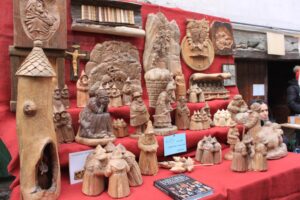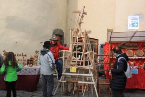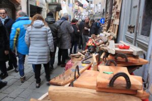 Sui tantissimi banchetti allestiti lungo le vie del borgo nella giornata di Domenica 15 Gennaio, tante creazioni originali, grandi e piccole opere d’arte, oggetti tipici come sabots, galletti, rastrelli, pizzi, tatà proposti ai visitatori in tante versioni, di fattura semplice o decorata, realizzati con materiali tradizionali o con tecniche innovative. Poi le immancabili sculture a tutto tondo e i bassorilievi dei maestri artigiani, gli attrezzi agricoli creati seguendo i metodi tradizionali, i mobili, gli oggetti d’uso quotidiano.